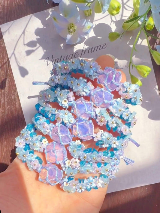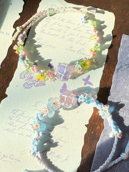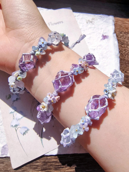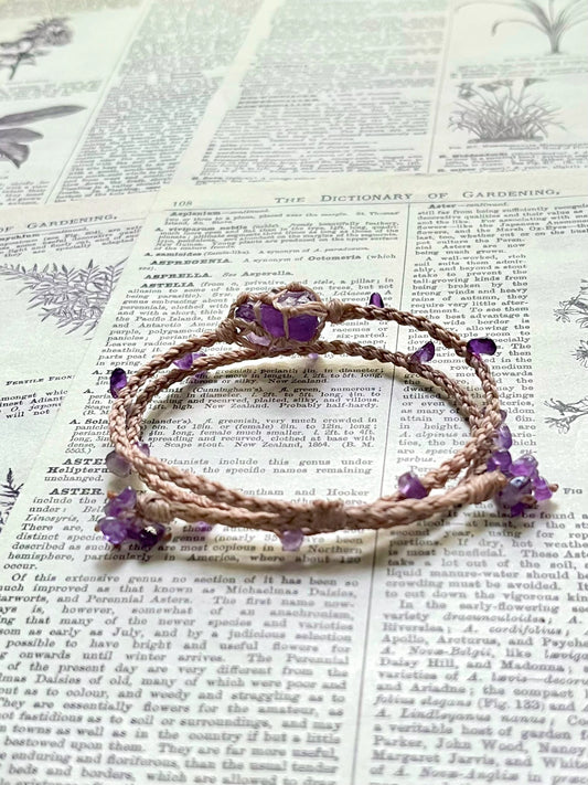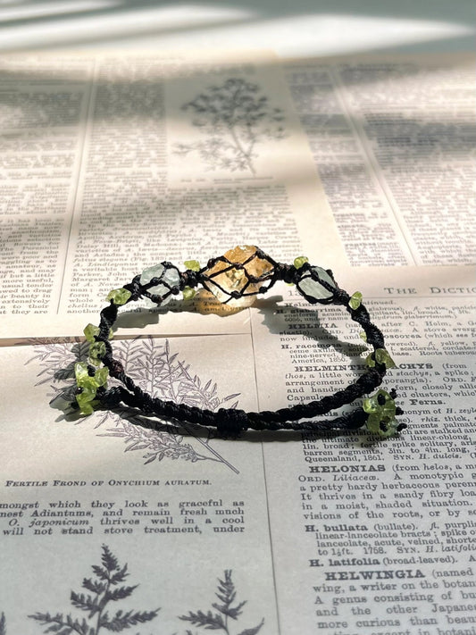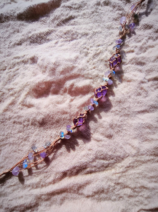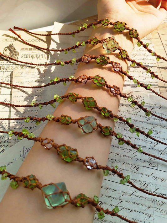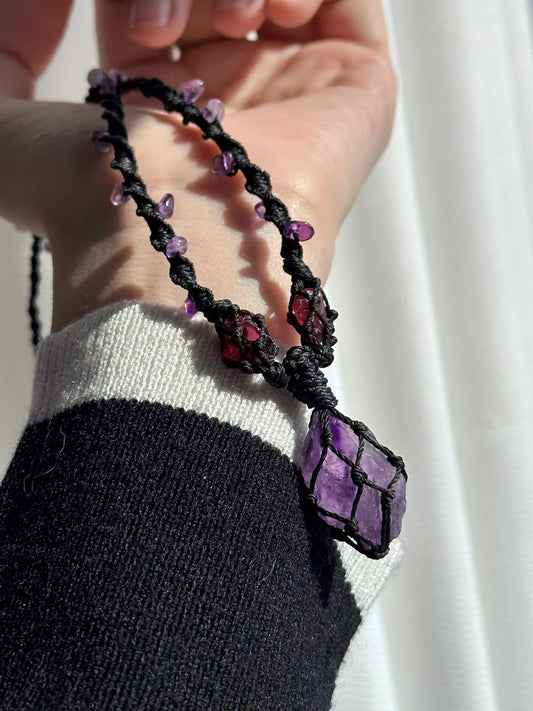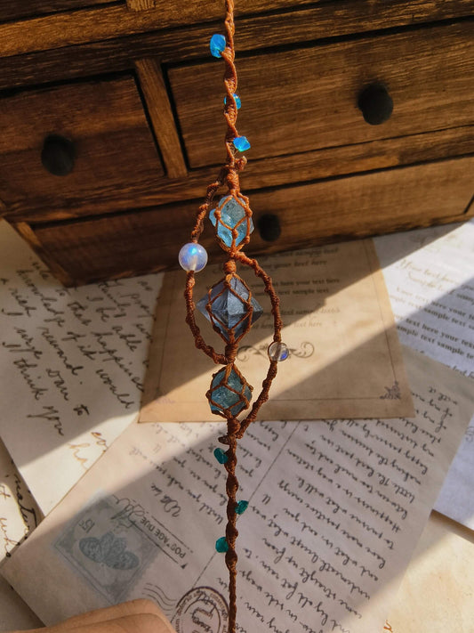 All crystals are carefully selected and handcrafted by me. Made with materials like woven rope, crystals, or metals.